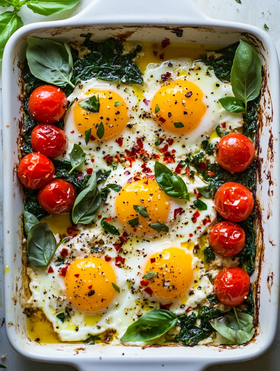 In the world of culinary delights, few dishes manage to blend simplicity and elegance quite like baked feta eggs with spinach and tomatoes. This recipe has gained significant traction recently, becoming a staple for those seeking a vibrant, flavorful meal that’s both satisfying and nutritious. The allure of baked feta cheese, which transforms under heat into a creamy, tangy delight, is not just a trend—it’s a revolution in the kitchen. By marrying this versatile ingredient with the wholesome goodness of eggs, fresh spinach, and juicy tomatoes, you create a dish that’s perfect for breakfast, brunch, or even a light dinner.