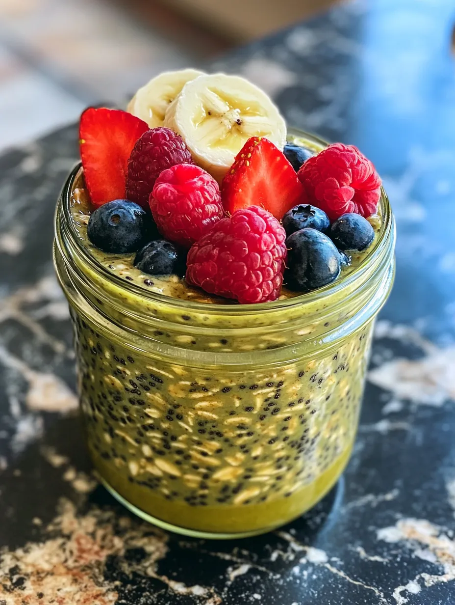 Chia seeds and matcha green tea are two superfoods that contribute significantly to the nutritional profile of this dish. Chia seeds, tiny but mighty, are loaded with omega-3 fatty acids, fiber, and antioxidants, making them a fantastic addition to any meal. Matcha, on the other hand, is finely ground green tea that boasts a wealth of health benefits, including high antioxidant content and a natural energy boost. Together, these ingredients not only enhance the flavor and texture of overnight oats but also elevate the dish to a new level of healthfulness.