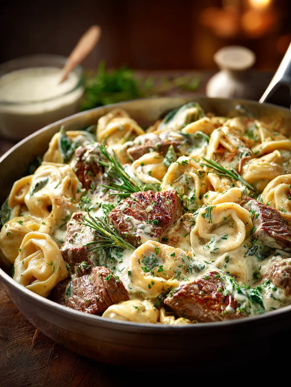 Toss it Together: Add the cooked tortellini and the sautéed steak back into the skillet. Gently toss everything together until well coated in the creamy sauce. Let it simmer for an additional 2-3 minutes to heat through.