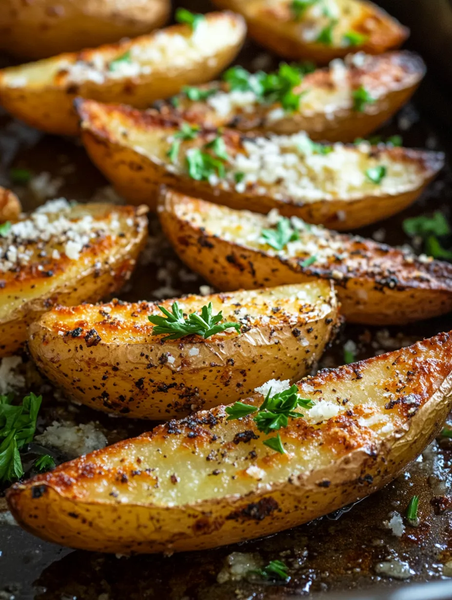 Moreover, these crispy Parmesan potato wedges are incredibly versatile. They can be served as a side dish alongside grilled meats, roasted vegetables, or fresh salads. Alternatively, they can shine as a standalone appetizer at parties or gatherings. Pair them with your favorite dipping sauces—ranch, garlic aioli, or even a spicy ketchup—and you’ve got a crowd-pleasing snack that everyone will love.