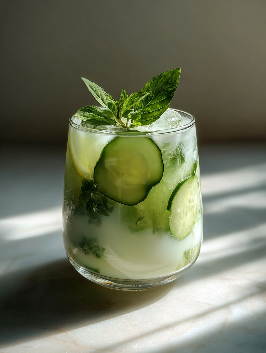 Substitute fresh basil with fresh mint leaves for a cooling twist. Mint adds a fragrant, refreshing flavor that pairs beautifully with cucumber and lemon.