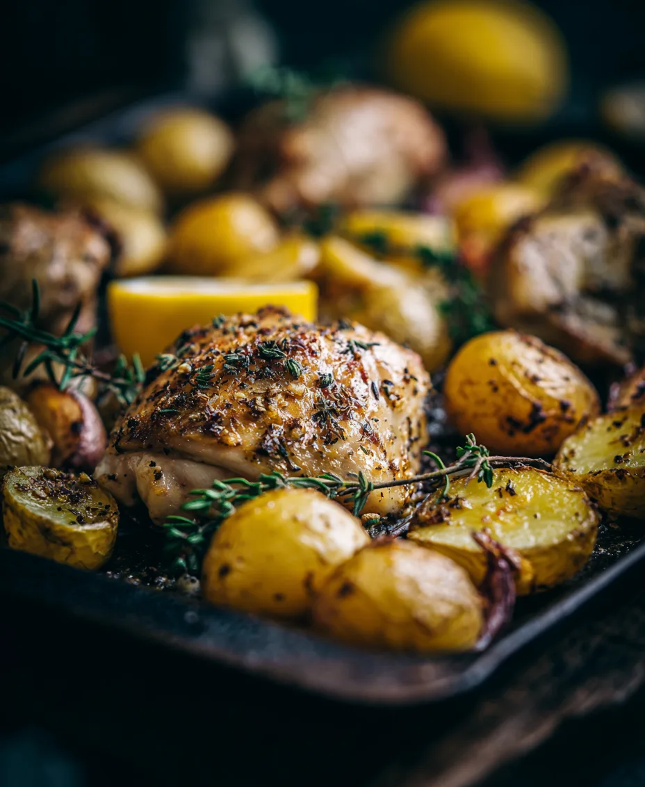 ## Zesty Lemon Garlic Chicken & Crispy Potato Bake: A Flavorful Culinary Adventure