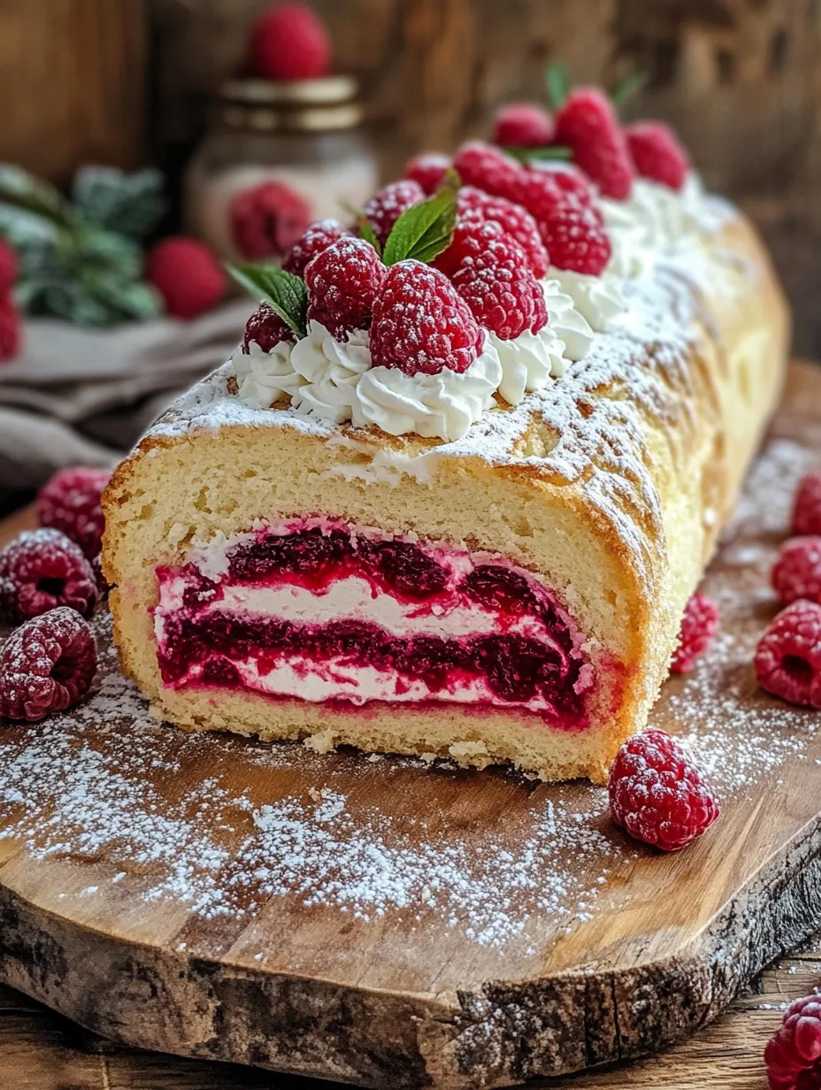 The raspberry cake roll is a delightful dessert that combines the sweetness of fresh raspberries with the lightness of whipped cream and the comforting texture of sponge cake. Its impressive appearance and delicious taste make it a standout on any dessert menu.