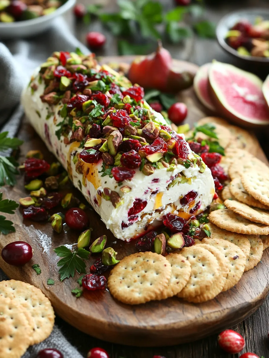 In summary, the Cranberry Pistachio Cheese Log is a delightful blend of flavors and textures that is sure to impress at any gathering. The tartness of the cranberries combined with the nuttiness of the pistachios creates a unique taste experience that is both refreshing and indulgent. As you prepare this dish, don’t hesitate to experiment with variations or personal touches to make it your own. Perhaps you could try incorporating different nuts or herbs, or even adding a hint of spice for an unexpected twist.
