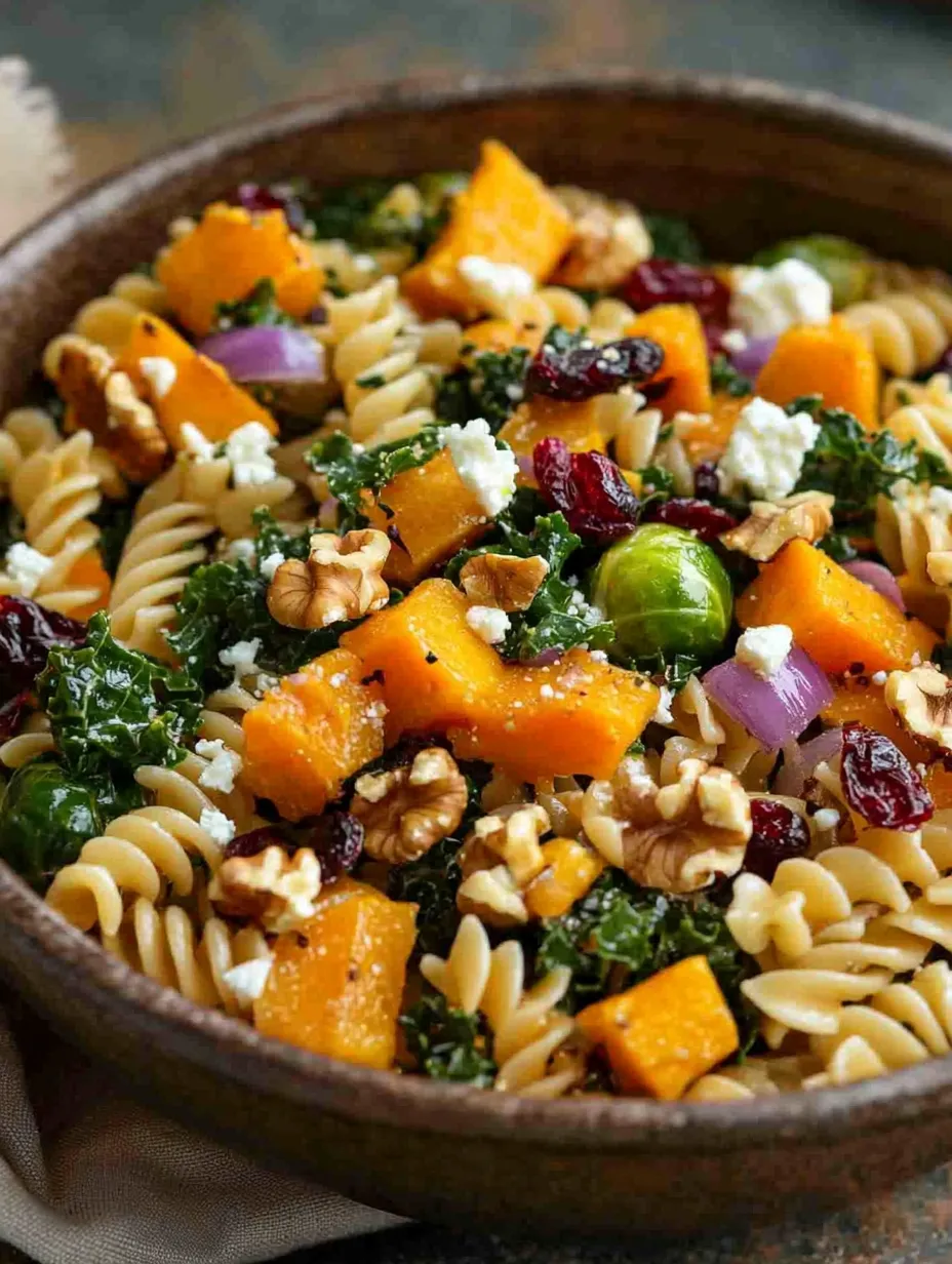 One of the great things about this Fall Harvest Pasta Salad is its adaptability. If you have specific dietary preferences or restrictions, feel free to swap out ingredients. For instance, if you’re gluten-free, you can use gluten-free pasta. If you prefer another type of nut or seed, sunflower seeds or pecans can be excellent alternatives to walnuts. Additionally, if you’re not a fan of kale, spinach or arugula can add a different flavor profile while still contributing to the dish’s nutritional value.