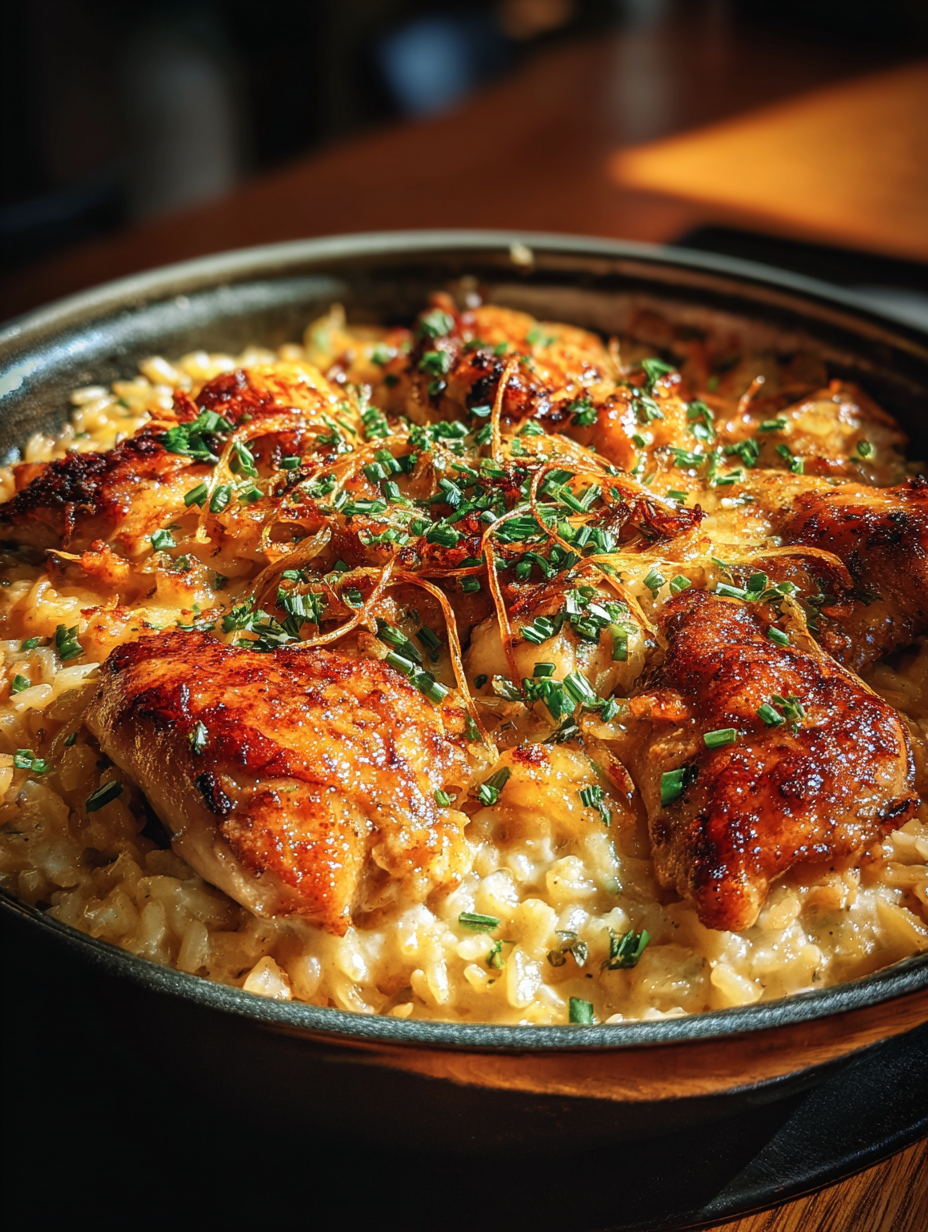 As the dish baked, I watched through the oven door as the cheese slowly melted, bubbling and browning to a golden hue. The combination of tender chicken, creamy rice, and that Gruyère cheese created a medley of textures — each bite was rich, warm, and utterly satisfying. The kids rushed into the kitchen as soon as they caught a whiff, and their eager laughter filled the air. It didn’t take long for this dish to become a beloved weeknight staple, celebrated for its ease and its ability to bring everyone together at the table. Now, it’s your turn to recreate that warmth and joy in your own home with this delightful recipe.