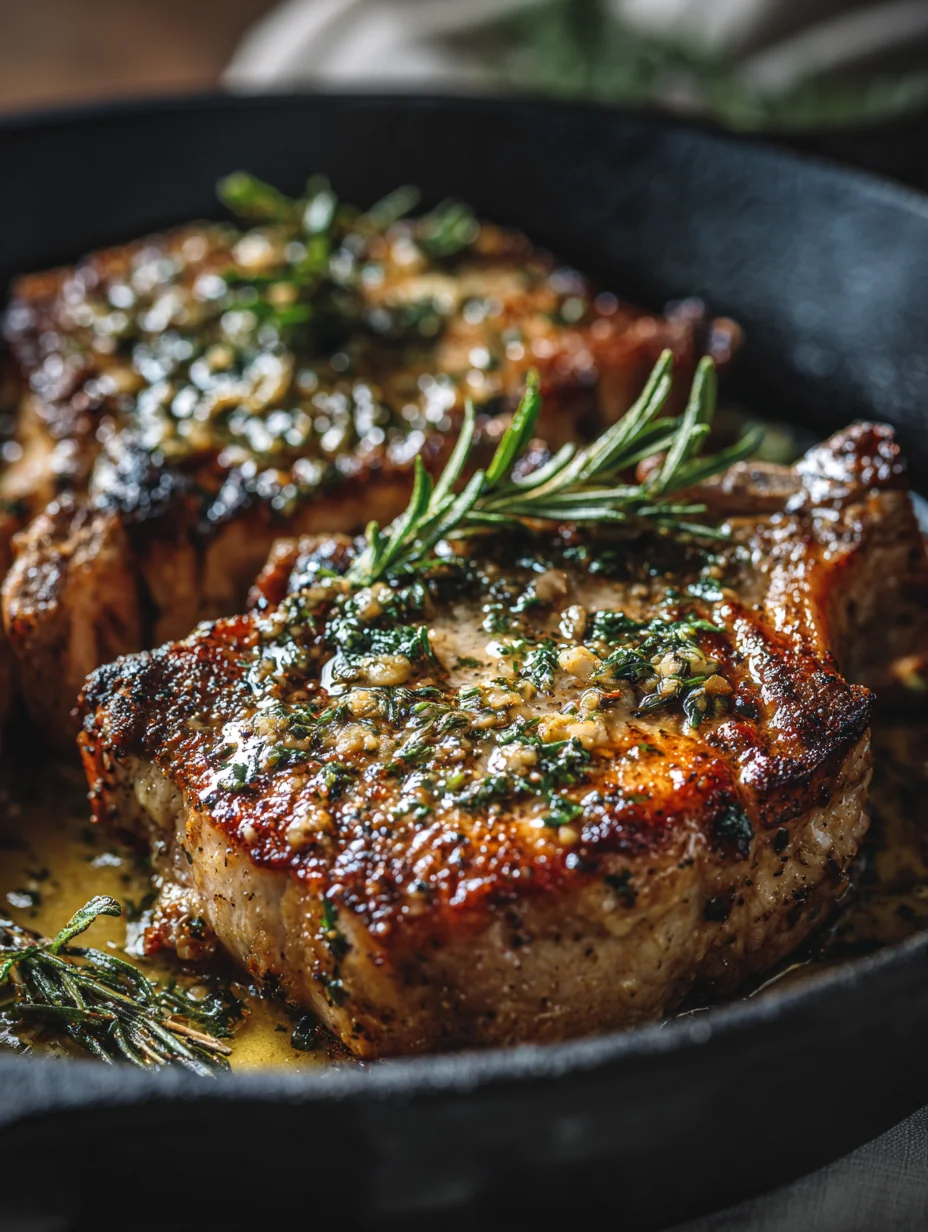 Once your pork chops are cooked, remove them from the skillet and let them rest for a few minutes. This allows the juices to redistribute throughout the meat, ensuring a juicy final product. You can serve the chops drizzled with the garlic butter sauce from the skillet and garnish with freshly chopped parsley for a pop of color and flavor.