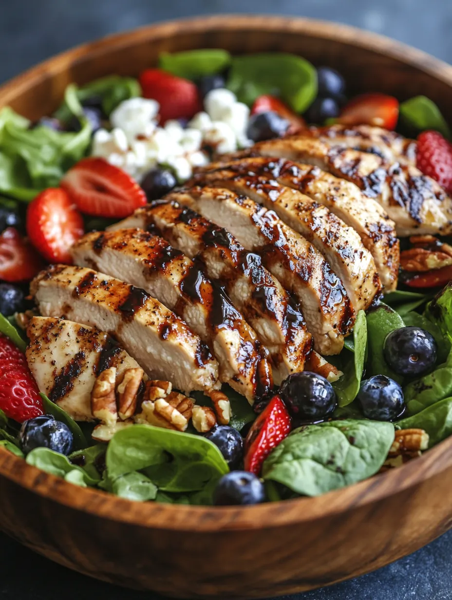 Incorporating fresh ingredients into our diets is essential for maintaining good health, and this salad does just that. Berries, in particular, are nutritional powerhouses, packed with antioxidants, vitamins, and minerals. They not only add a burst of flavor but also contribute to overall well-being. When paired with a mix of crisp salad greens and grilled chicken, this dish becomes a balanced meal option that keeps you energized and satisfied.
