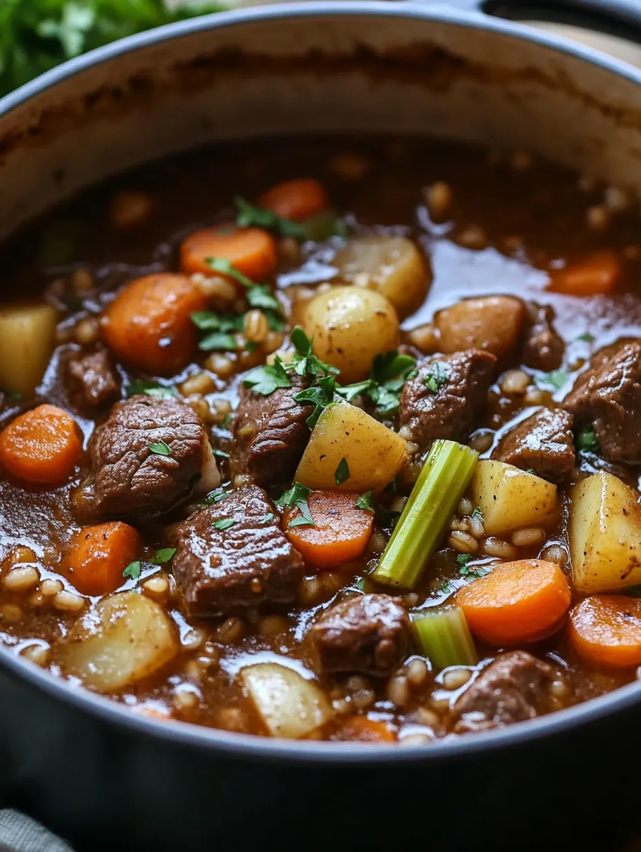At its core, this stew combines protein-rich beef, fiber-filled barley, and a rainbow of vegetables, creating a nutrition powerhouse.