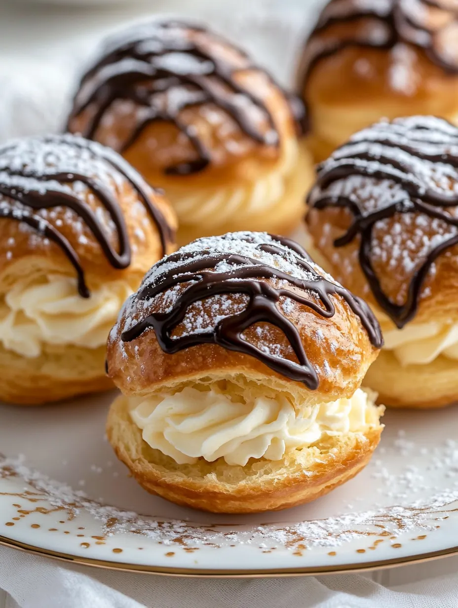 For those looking to elevate their cream puffs even further, a chocolate drizzle adds a touch of elegance and flavor.