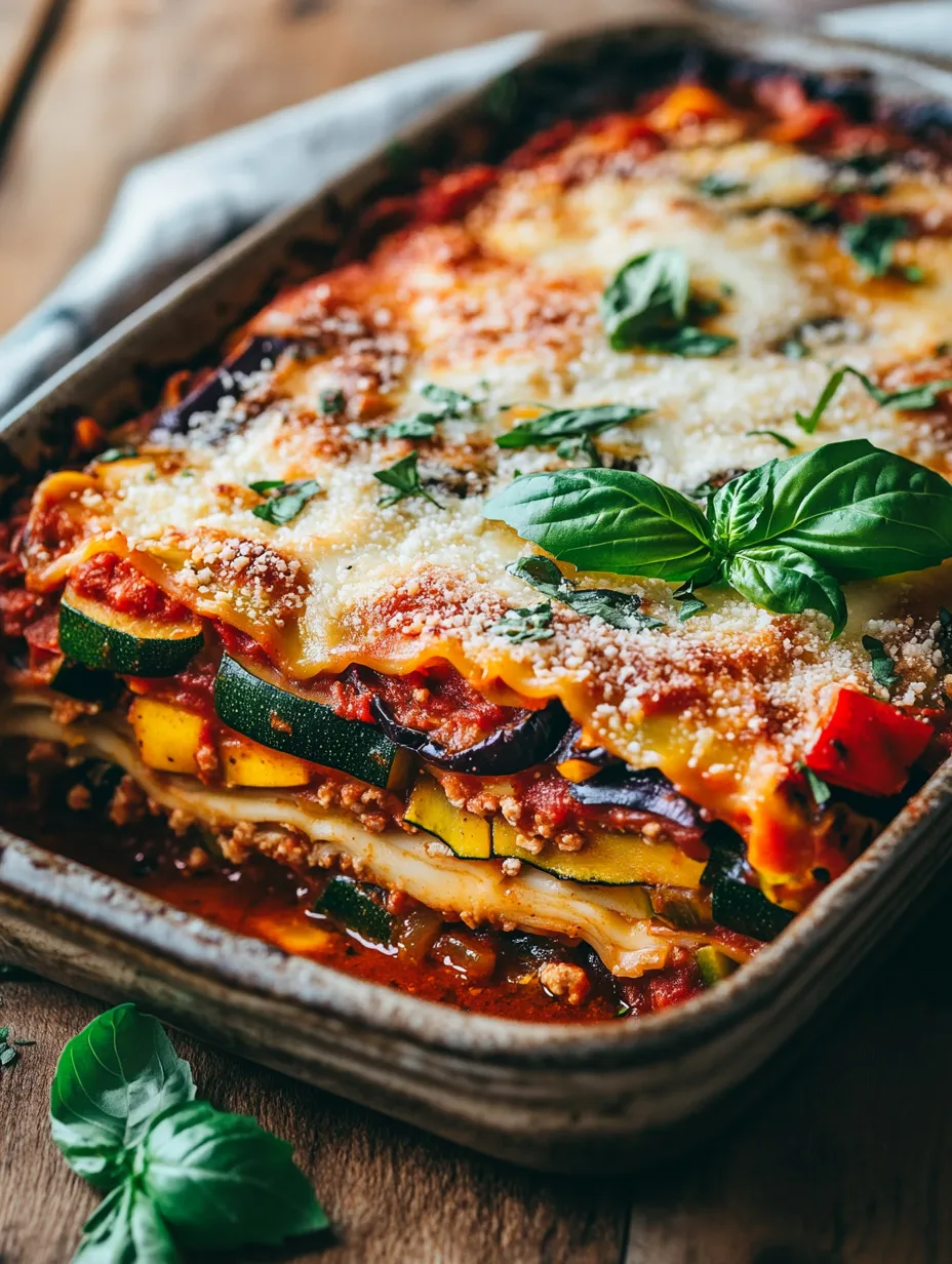 To elevate your presentation, garnish each slice with freshly chopped basil or a sprinkle of parsley. This not only adds a pop of color but also enhances the fresh flavor profile of the dish. Pair your lasagna with a side salad dressed with a light vinaigrette for a refreshing contrast to the richness of the lasagna. A simple arugula and cherry tomato salad can provide a delightful crunch and balance.
