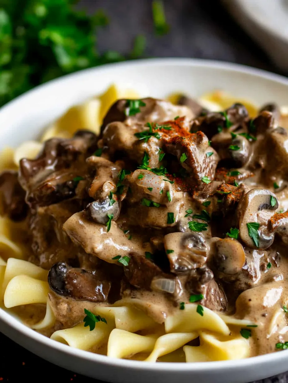 – Creative Serving Ideas: While egg noodles are traditional, experimenting with alternatives can be fun. Try serving the stroganoff over spiralized zucchini for a low-carb option or atop fluffy rice for a different texture. Quinoa can also be a nutritious base for this dish, adding a nutty flavor that pairs well with the sauce.