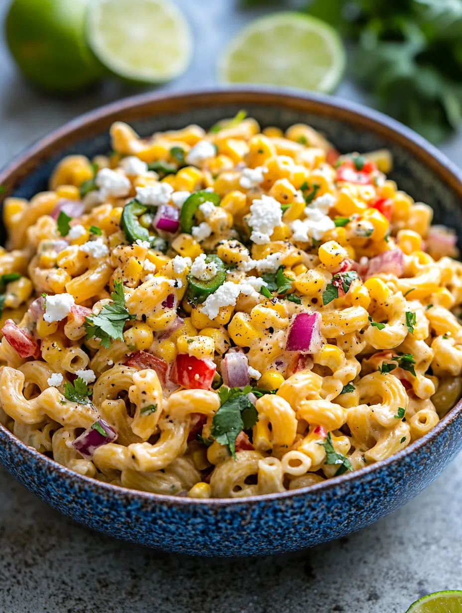 In summary, the Mexican Street Corn Pasta Salad is a delightful blend of fresh ingredients, vibrant flavors, and contrasting textures. The combination of sweet corn, crunchy vegetables, and a creamy dressing creates a refreshing dish that is perfect for any occasion. Whether you are serving it as a side at a summer barbecue or as a main course for a vegetarian meal, this salad is sure to impress.
