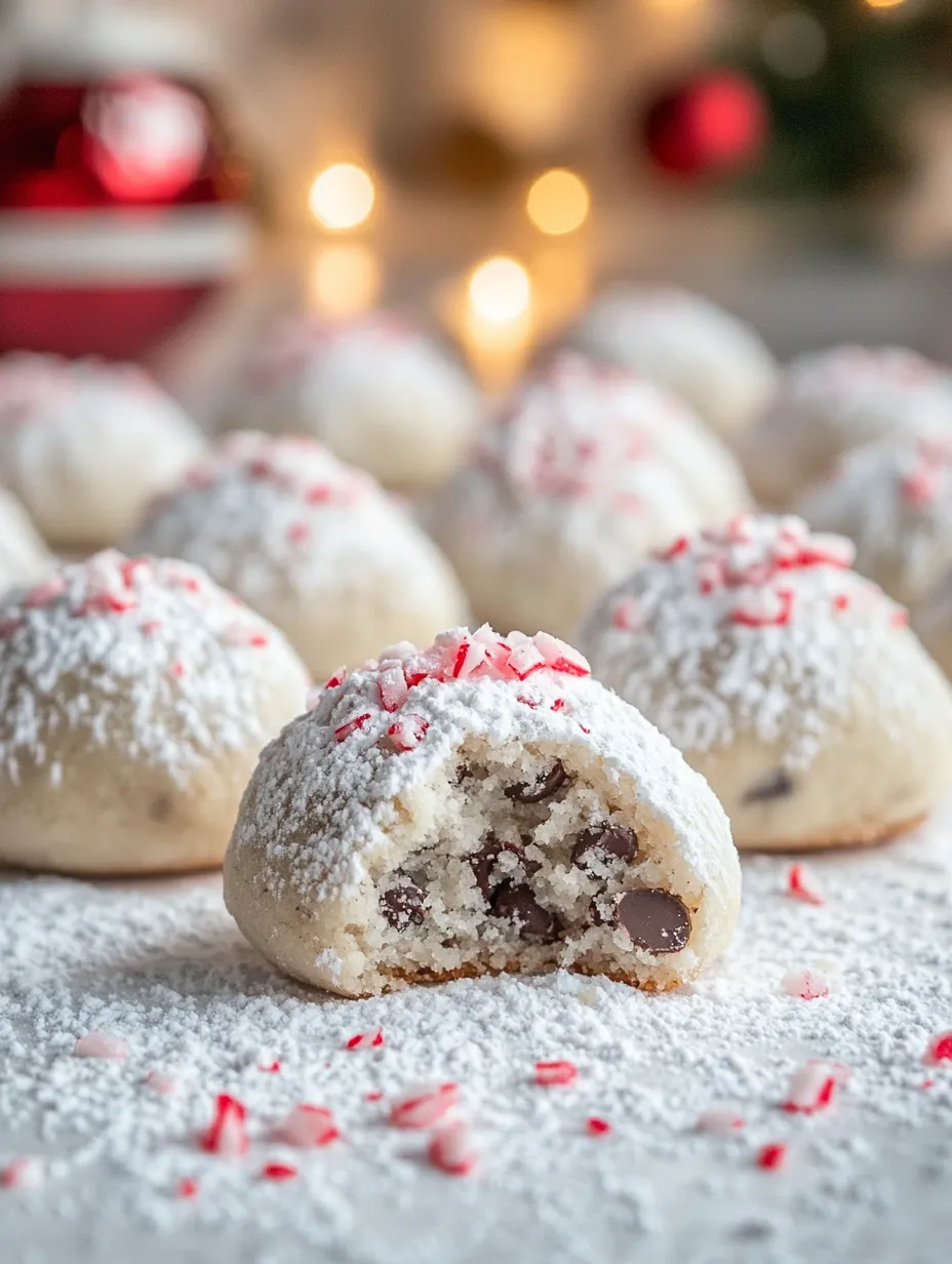 Mint Chocolate Chip Snowball Cookies are not just another holiday treat; they are an experience. The combination of textures and flavors makes them truly unique. The initial crunch of the powdered sugar coating gives way to a soft, tender cookie that is both comforting and indulgent. The addition of mini chocolate chips adds a rich chocolatey depth, while the crushed peppermint brings a refreshing brightness that evokes the spirit of the season.
