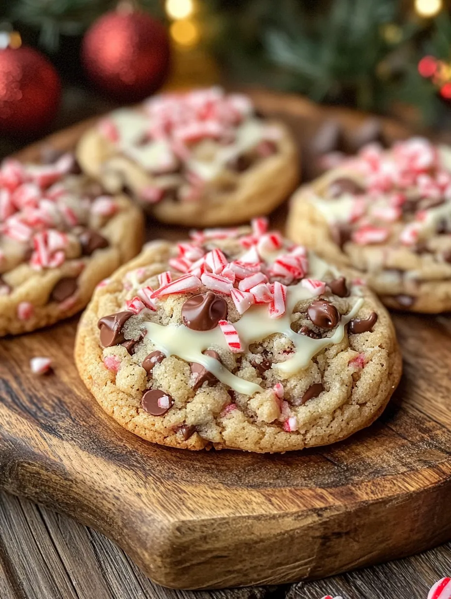 Minty Bliss Peppermint Bark Cookies are a perfect treat for holiday gatherings. Present them on a festive platter, perhaps alongside other holiday treats like gingerbread men or chocolate truffles. For a delightful display, stack them in a clear glass jar or arrange them in decorative boxes tied with ribbons for gifting.