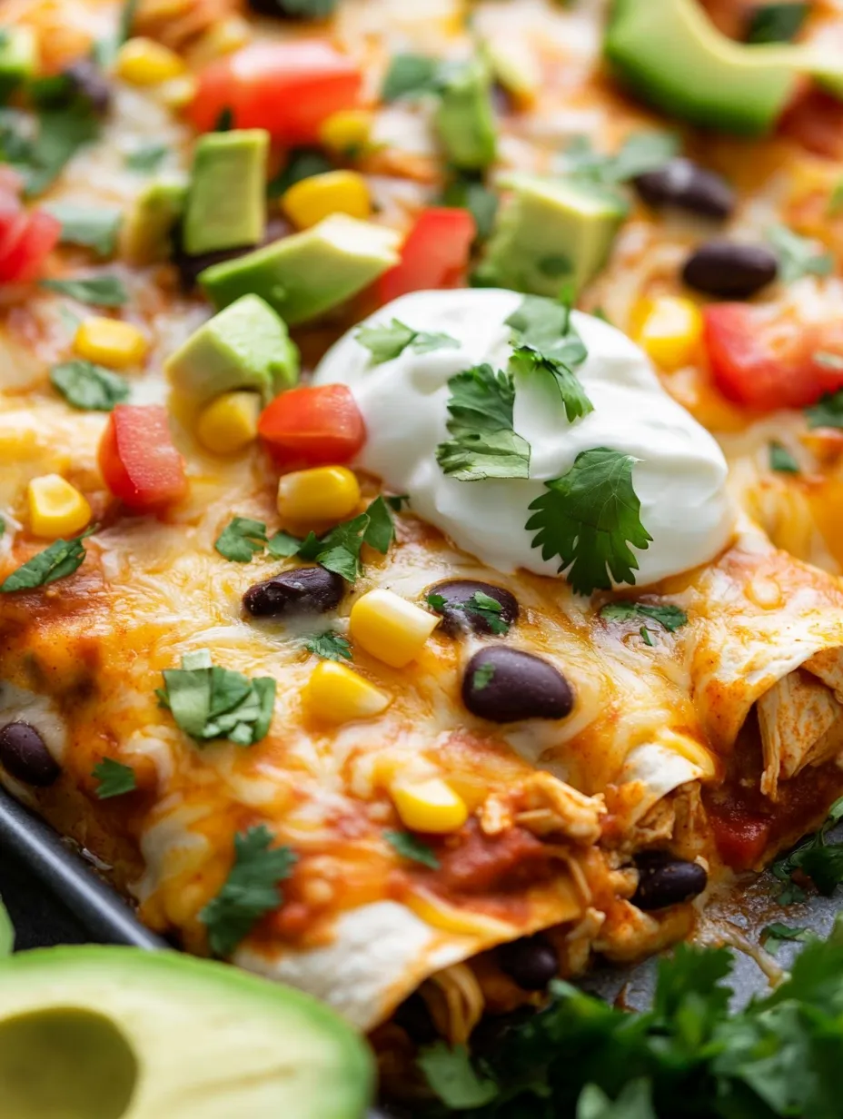 In conclusion, making No-Roll Sheet Pan Chicken Enchiladas is not only easy but also incredibly delicious. This recipe allows you to enjoy the flavors of traditional enchiladas without the fuss of rolling each one individually. It’s a perfect solution for busy families looking to streamline their meal prep while still enjoying a satisfying and wholesome dish.