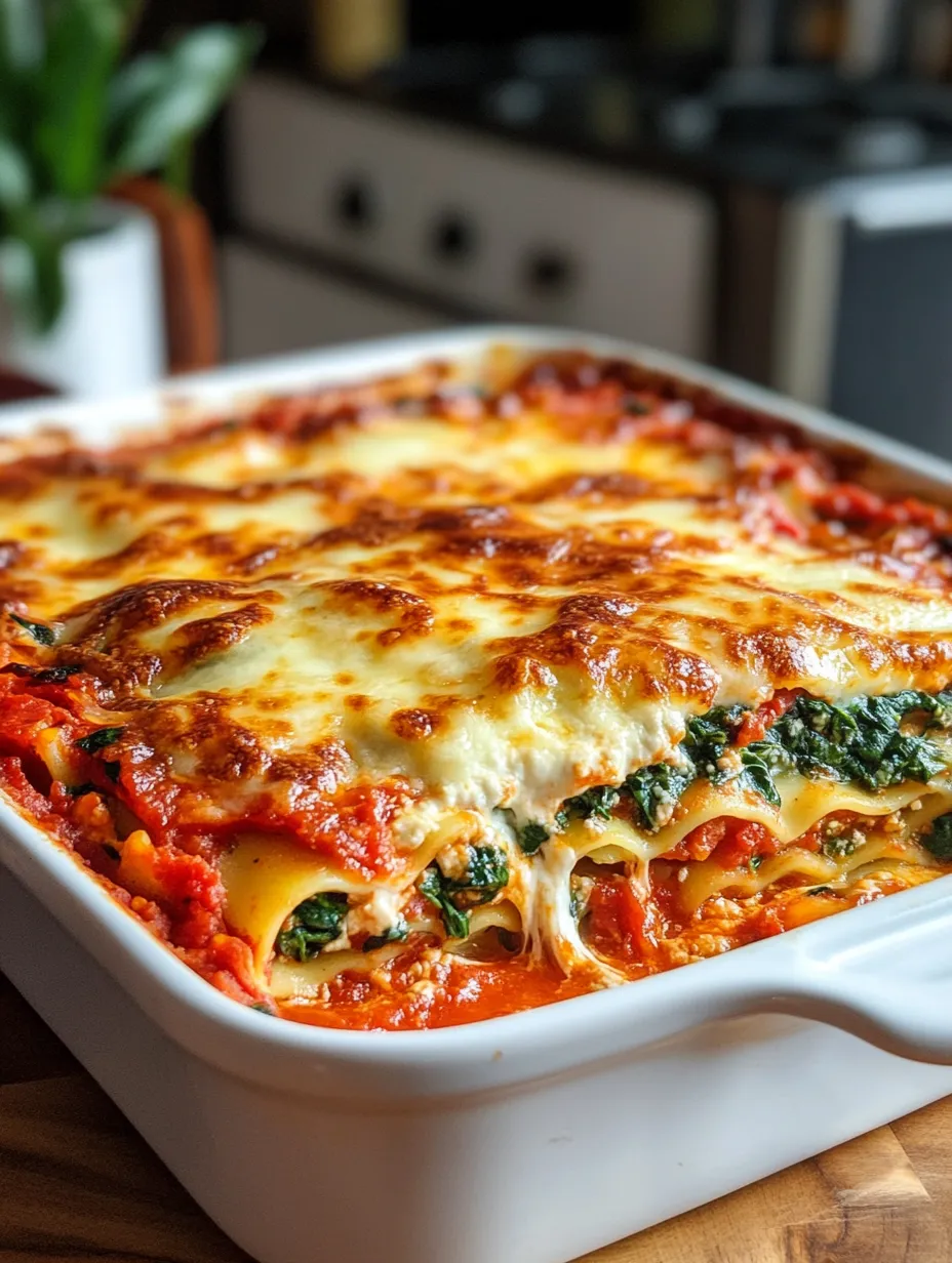 With its rich and creamy textures from the combination of ricotta and mozzarella cheeses, paired with the sweetness of roasted red peppers and the earthy notes of fresh spinach, this lasagna is a feast for both the eyes and the palate. Ideal for family gatherings, dinner parties, or even as a make-ahead meal for busy weeknights, it is packed with nutrients and flavor, making it a perfect choice for any occasion.