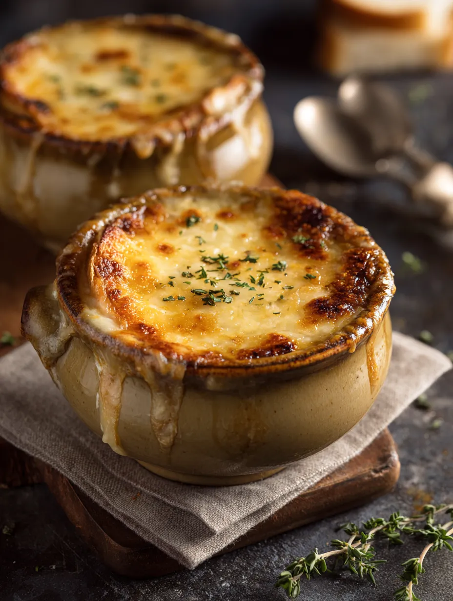 Experience the comforting allure of a Rustic Cheesy French Onion Soup, where sweet caramelized onions meld with rich broths for a flavor thats simply irresistible. Topped with herbed croutons and a gooey blend of Gruyère and mozzarella, each bite warms the soul. Try this delightful recipe at simpleeats and elevate your dining experience! FrenchOnionSoup ComfortFood CheesyDelight HomemadeSoup CozyEats Foodie RecipeIdeas