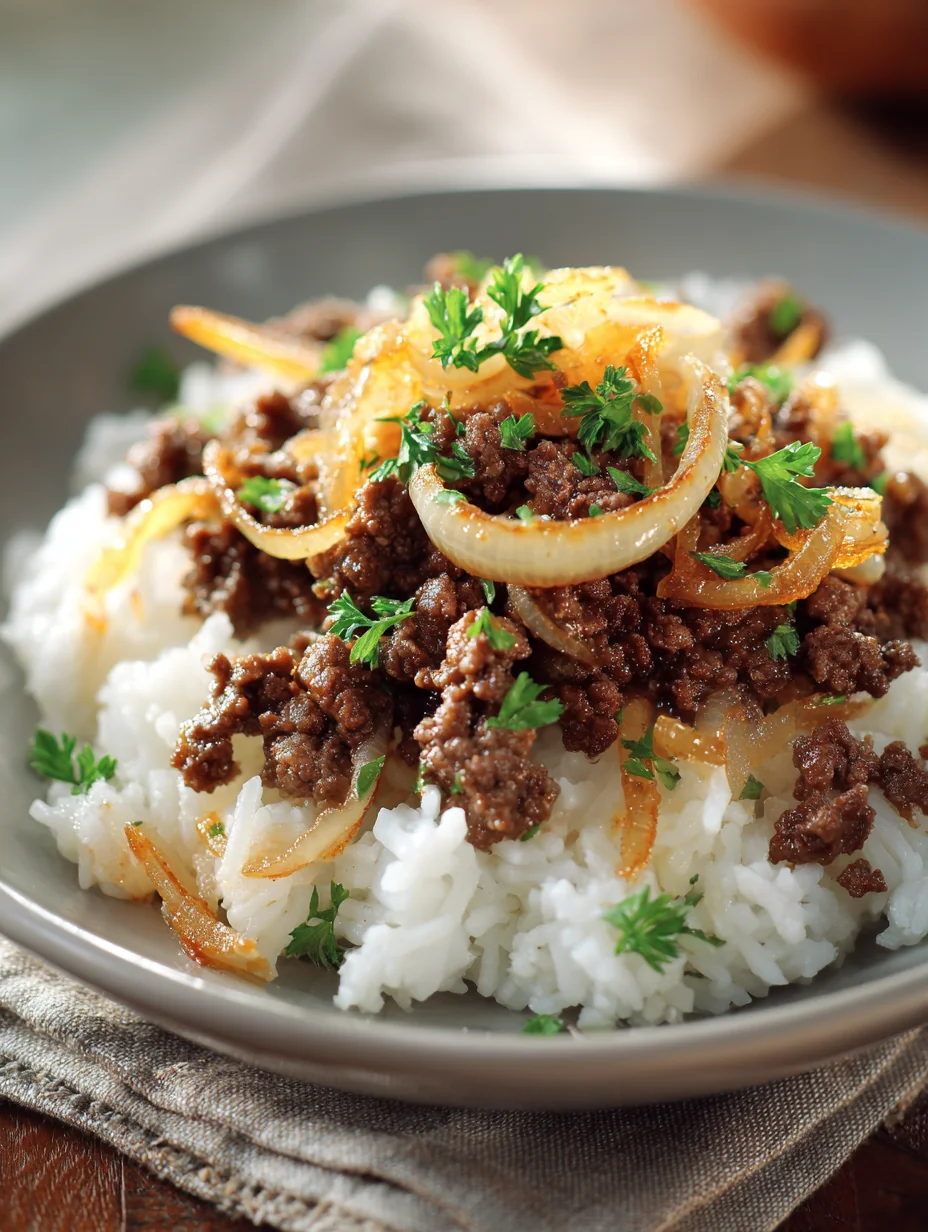 This savory french onion beef over rice: a comforting delight is a simple dinner recipe made with everyday ingredients. Perfect for busy days and family meals.