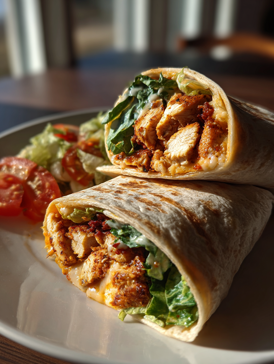 1. Seasonal Variation: Summer Veggie Wrap – In addition to the chicken, add freshly diced zucchini and bell peppers sautéed until tender. This adds a seasonal crunch and a burst of color, enhancing the freshness of the wrap.