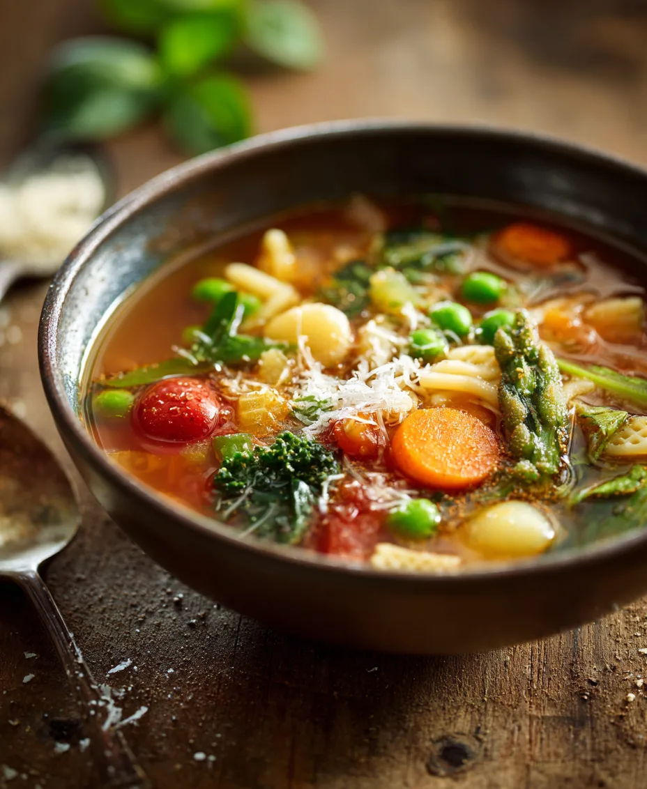 Delicious Spring Vibrance Minestrone Soup 🌱✨ ready to serve