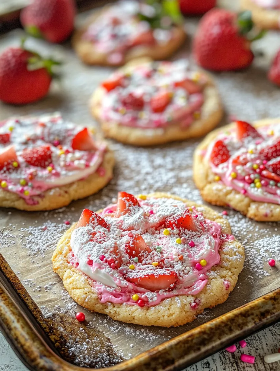 Consider topping your cookies with fresh strawberry slices for an added burst of flavor and freshness. You can also drizzle melted white chocolate over the cookies for an extra touch of sweetness. If you love sprinkles, add a colorful sprinkle topping to give your cookies a festive look, perfect for parties or celebrations.