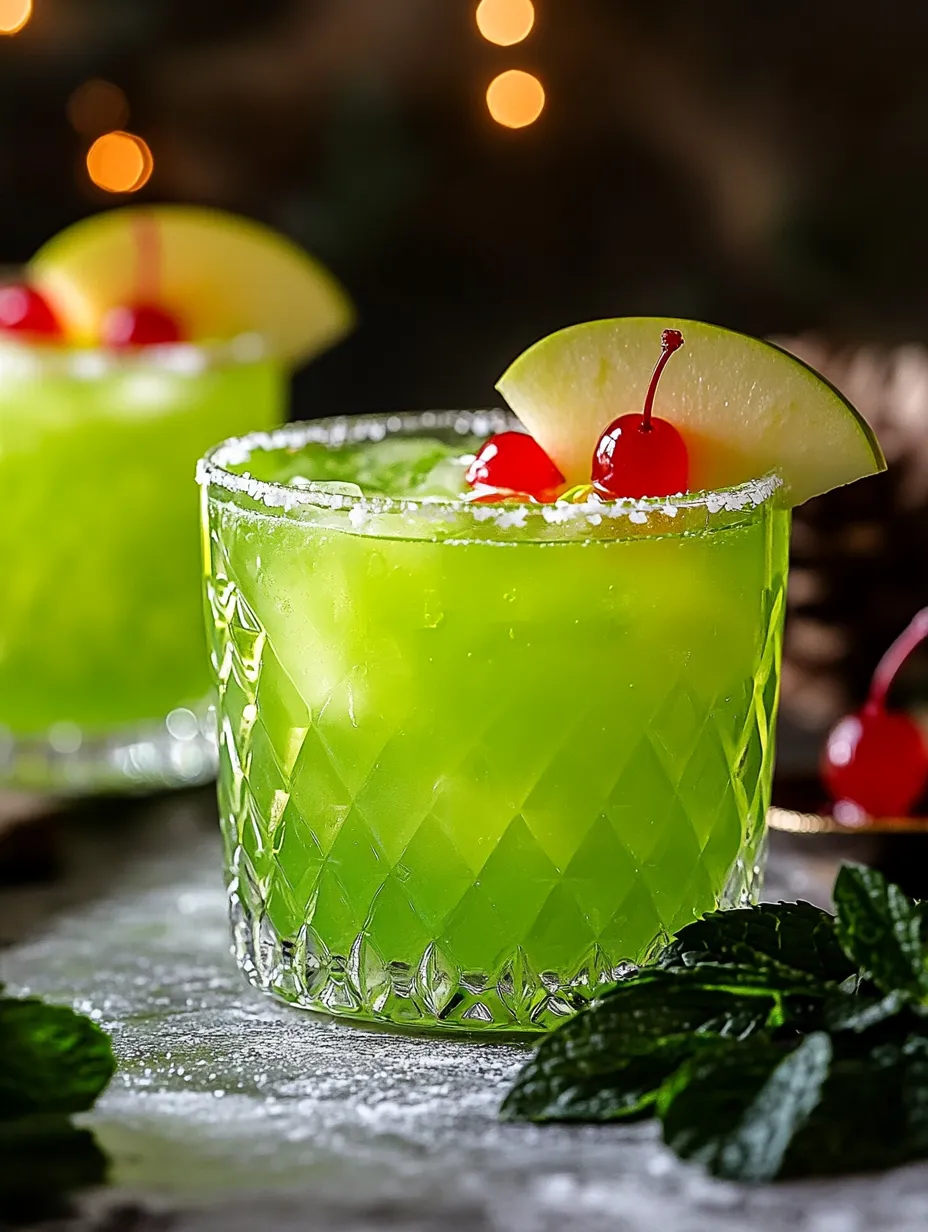 Finally, garnishing your Grinch Punch Mocktail with green apple slices and maraschino cherries takes the presentation to another level. The crispness of the apple slices adds texture, while the cherries provide a sweet contrast that enhances the drink’s flavor. These garnishes not only make the drink look inviting but also offer guests an opportunity to enjoy a little extra fruitiness as they sip on their festive concoction.