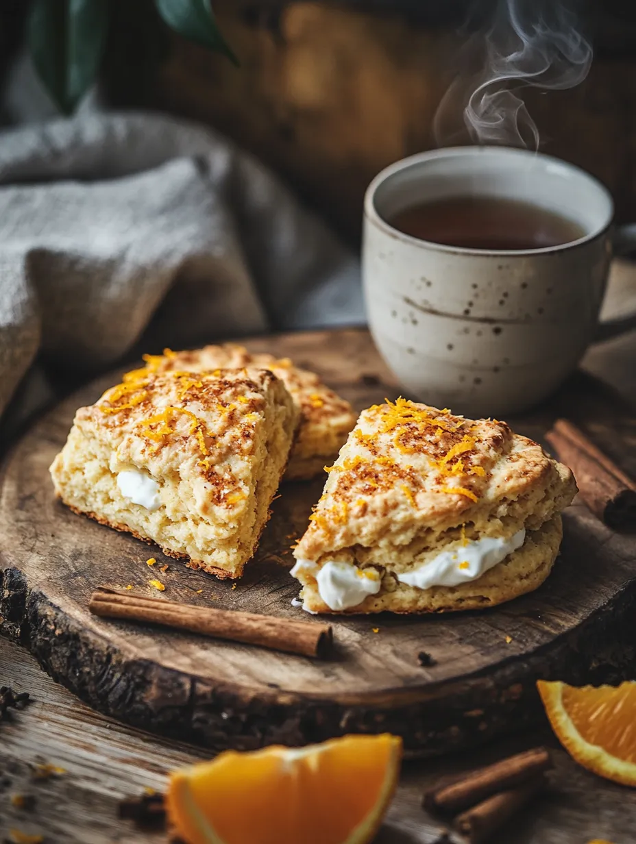 The Zesty Orange Chai Scone is a remarkable blend of flavors that marries the brightness of orange zest with the warm, comforting spices of chai. The primary components of this flavor profile include the zest of fresh oranges and a blend of aromatic spices such as cinnamon, ginger, cardamom, and cloves. Together, these ingredients create an inviting aroma that fills the kitchen and entices everyone nearby.